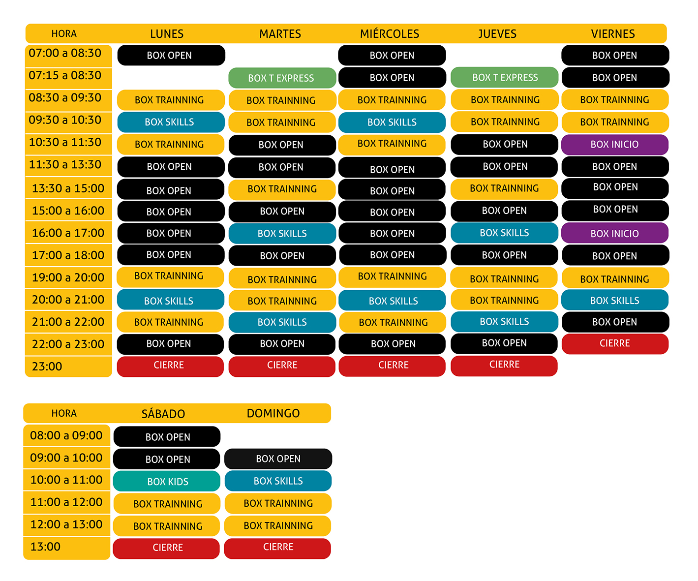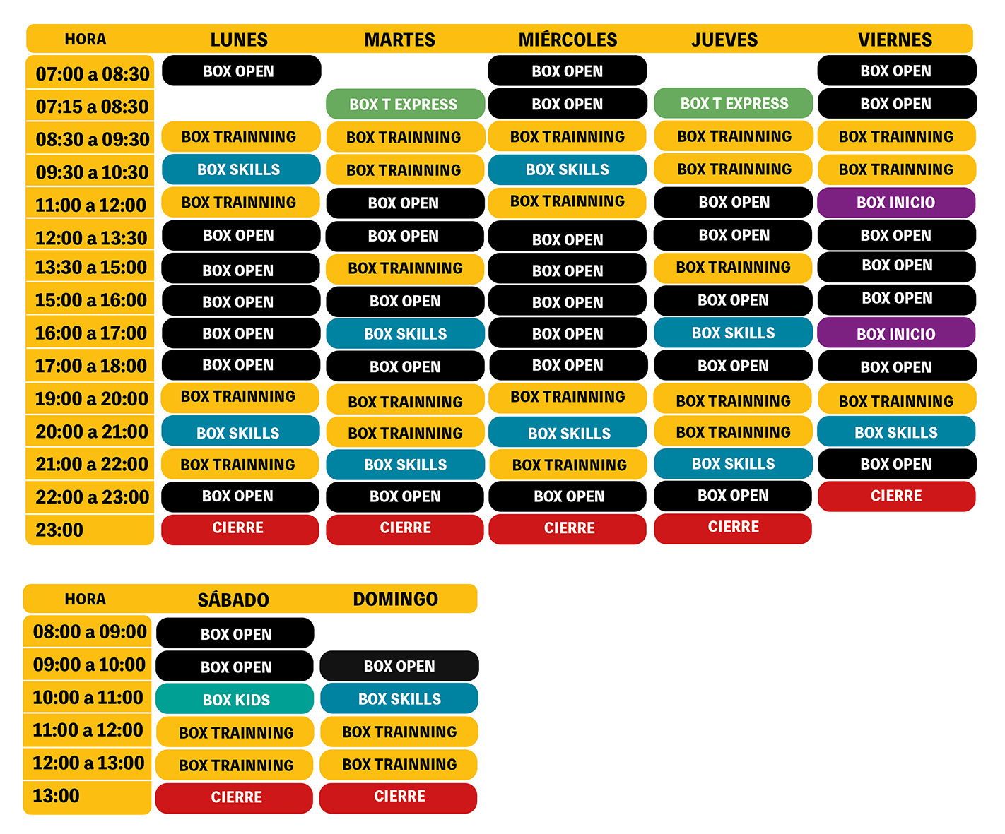 HORARIOS DE FUNCIONAMIENTO LUNES A JUEVES de 7:00 a 23:00 hrs. VIERNES de 7:00 a 22:00 hrs.SÁBADOS de 08:00 a 13:00 hrs.DOMINGOS de 09:00 a 13:00 hrs.